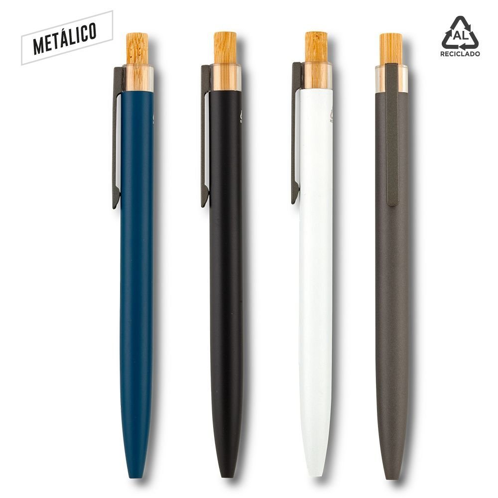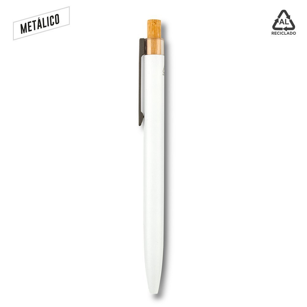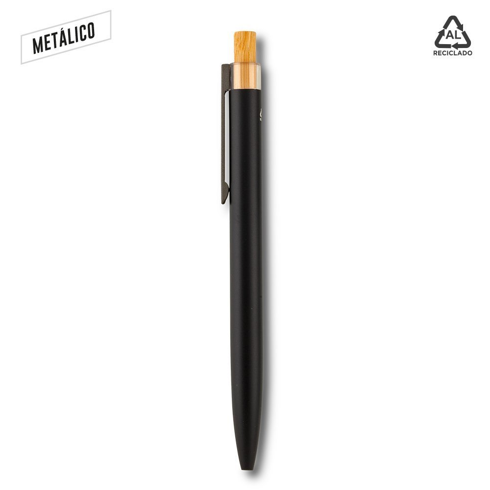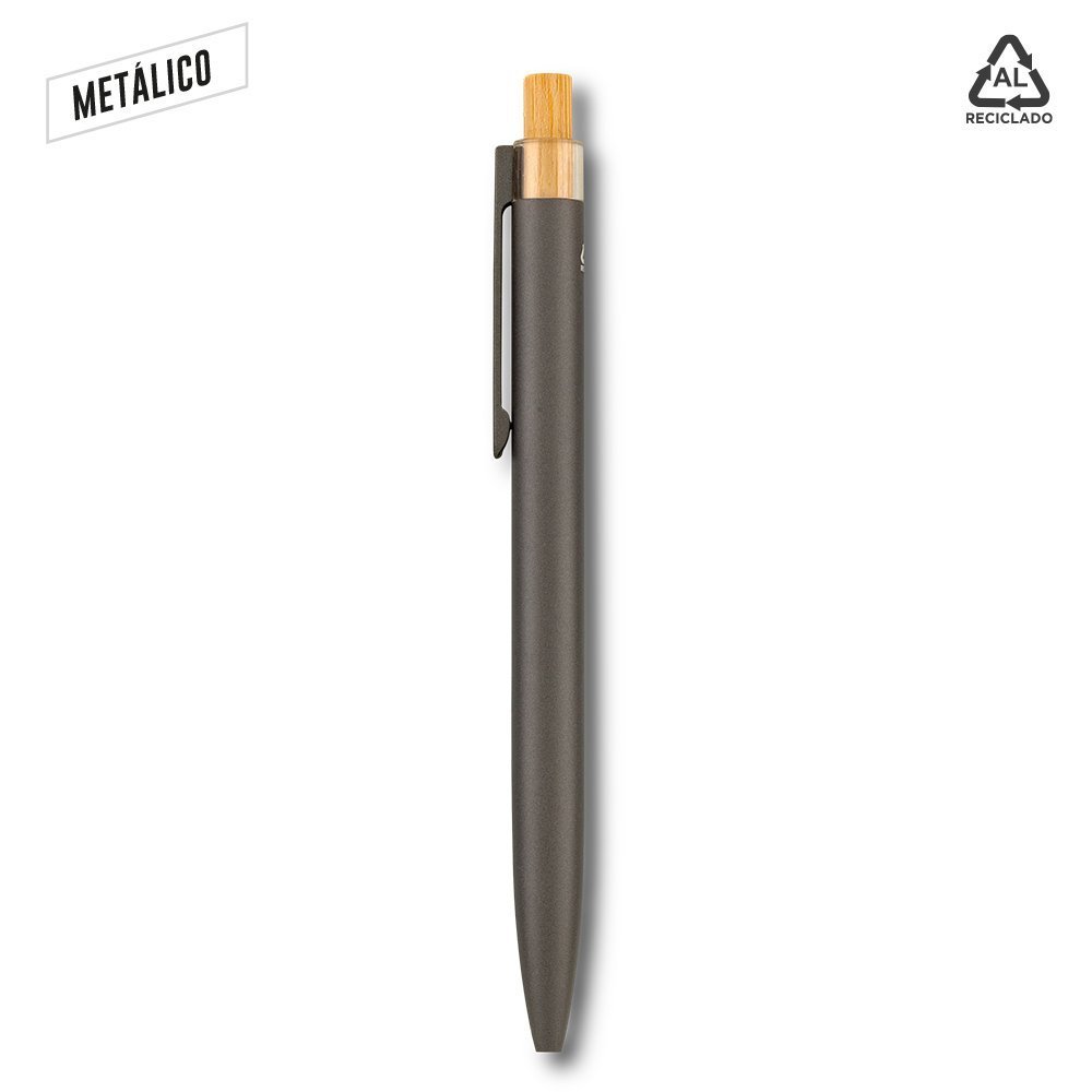 Bolígrafo en aluminio reciclado. Con partes en plástico y bambú. Mecanismo push.