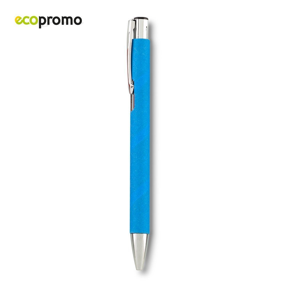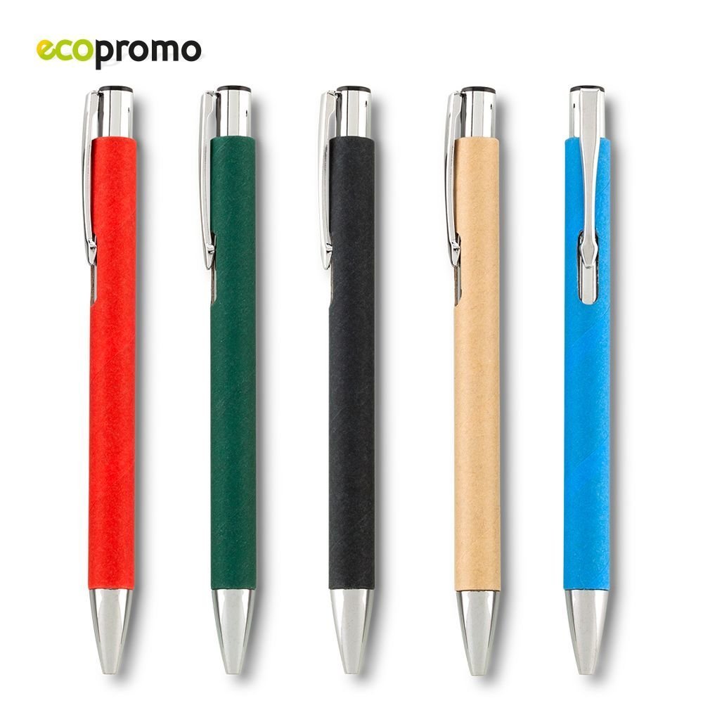 Bolígrafo con partes plásticas y cuerpo de cartón. Clip metálico. Mecanismo push.