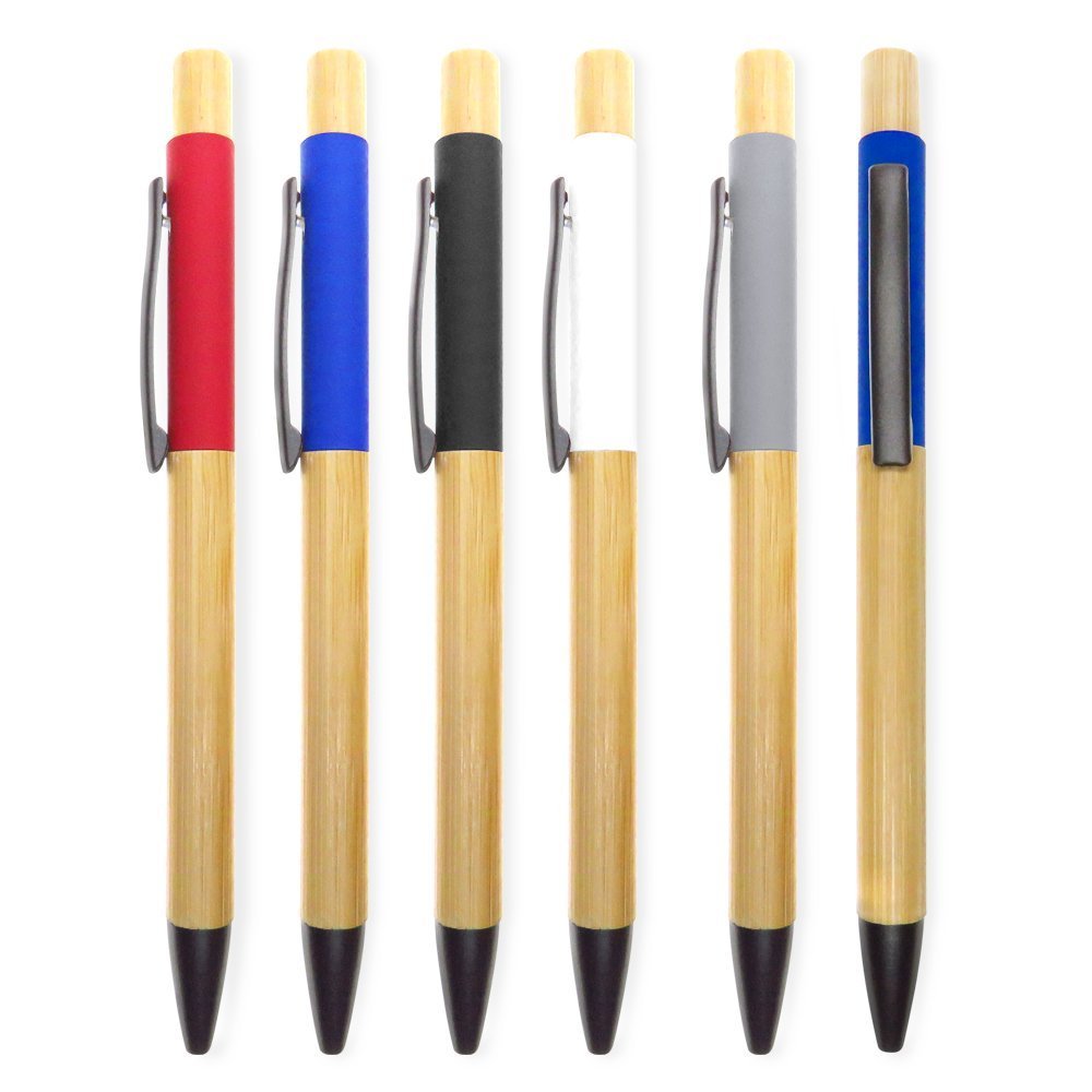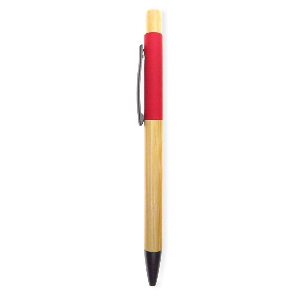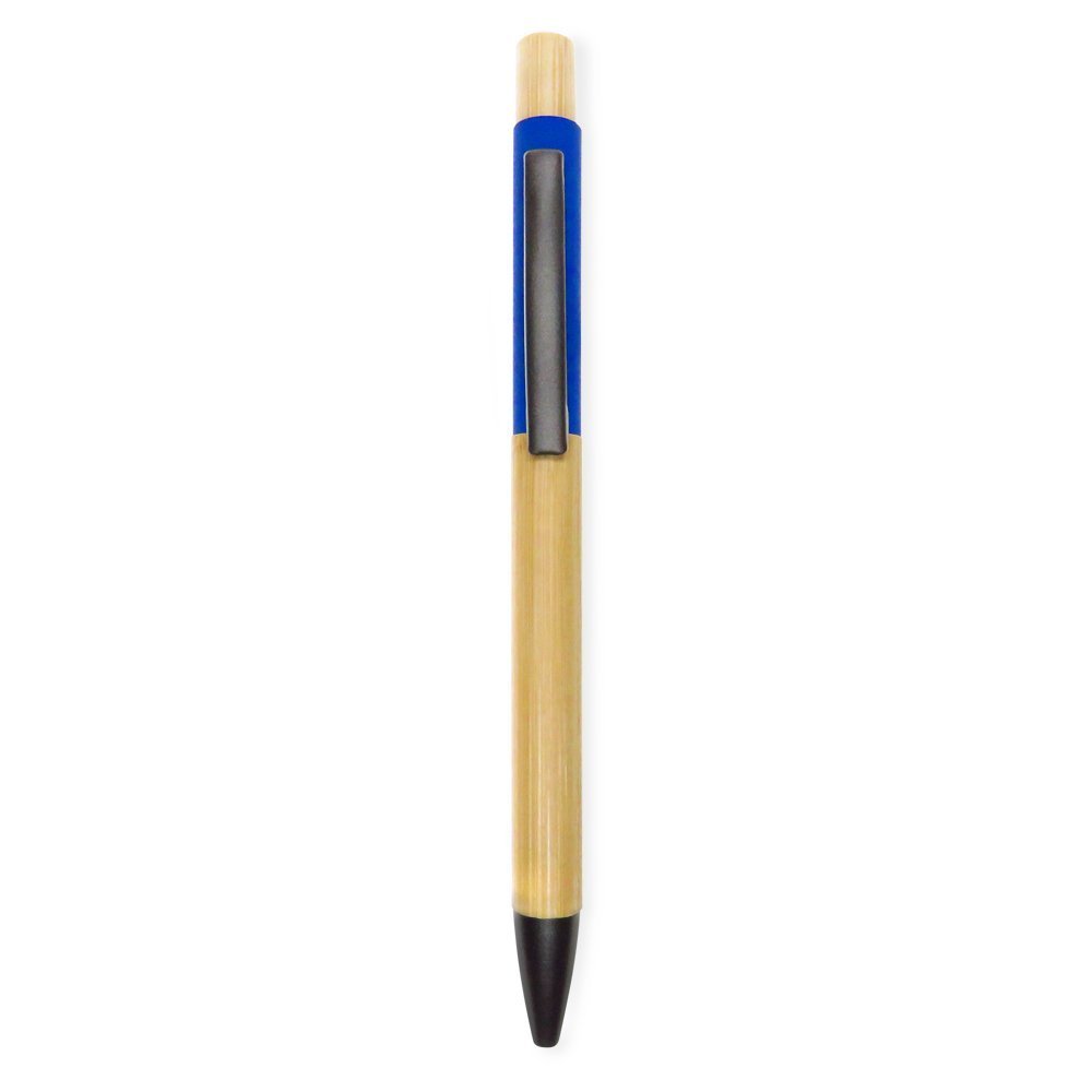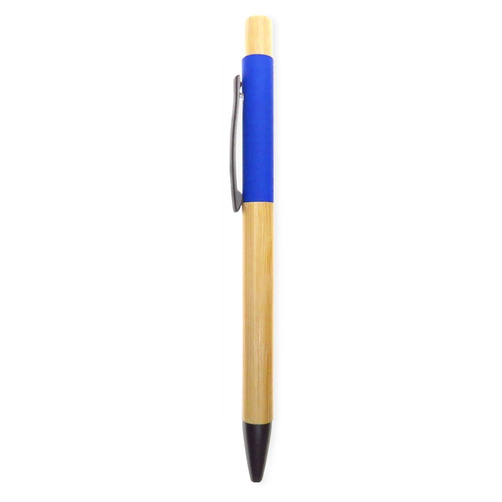 Boligrafo en bambú con partes metalizadas. Mecanismo push en bambú. Clip metálico.