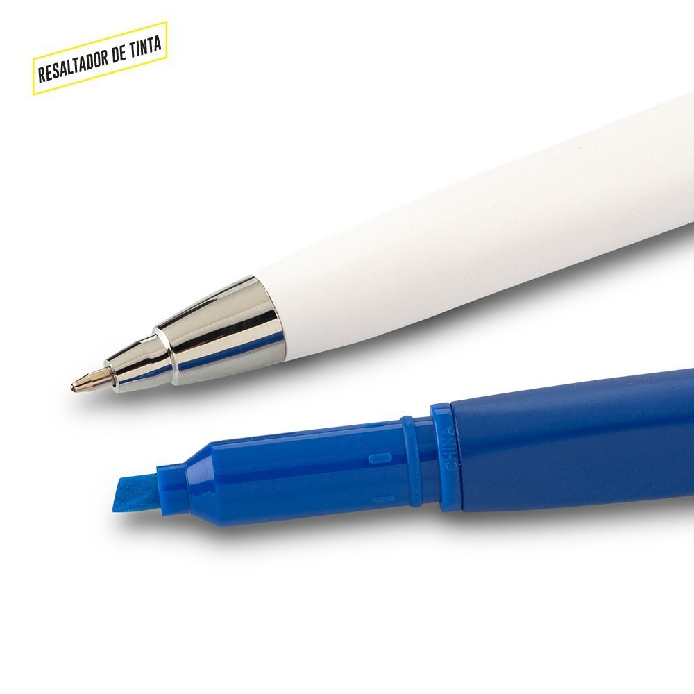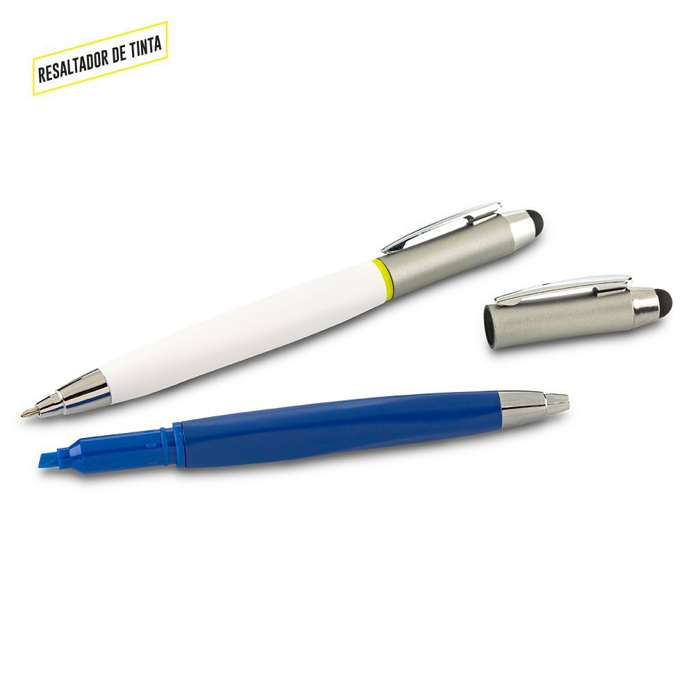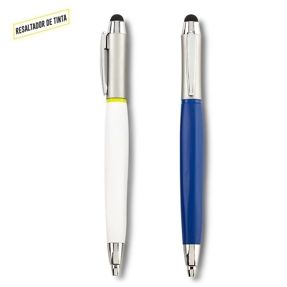 Bolígrafo plástico con stylus y resaltador de tinta.