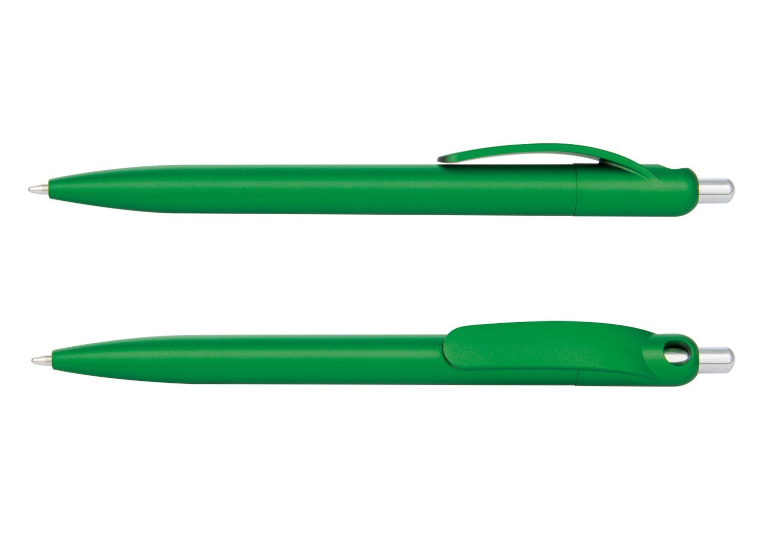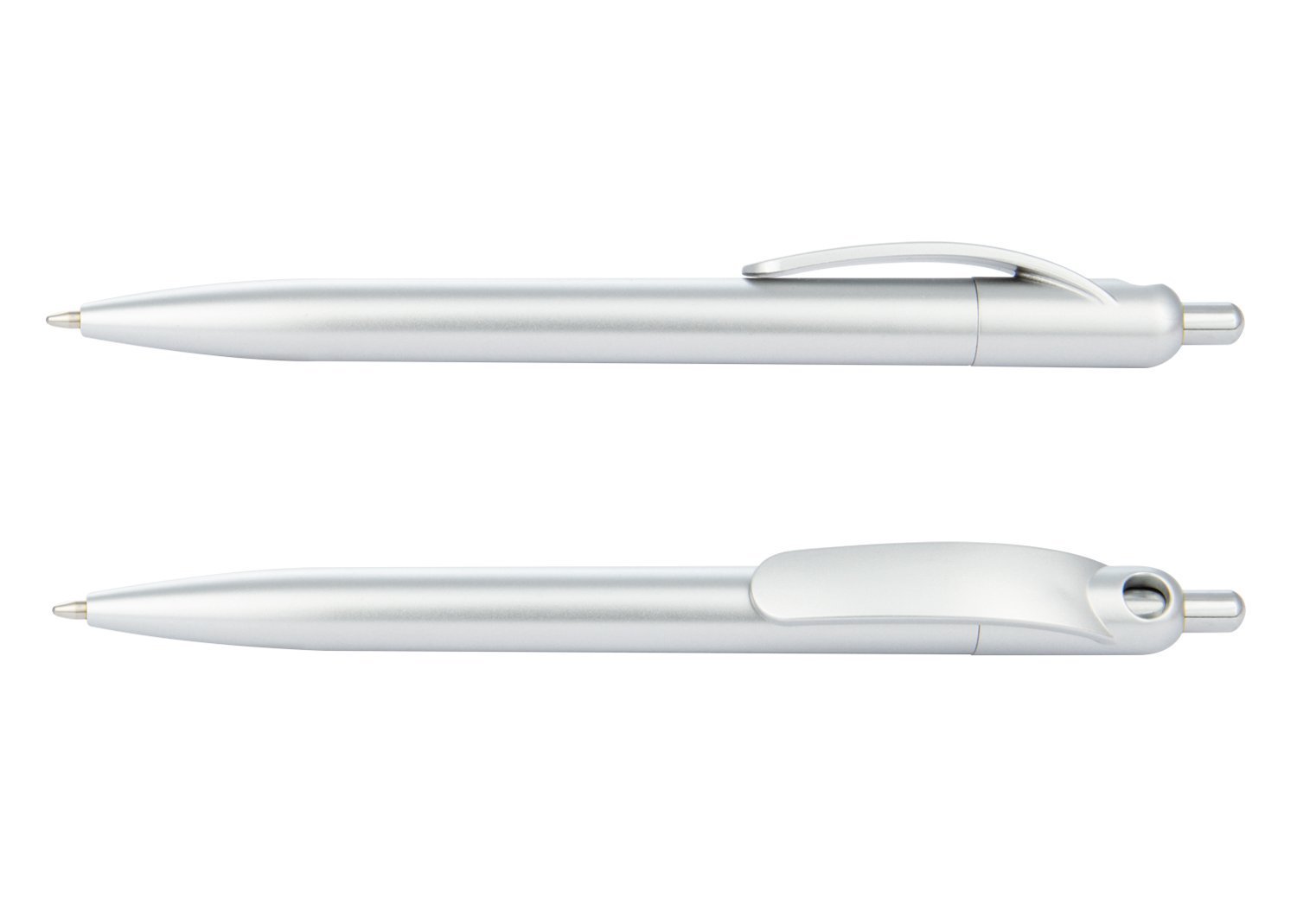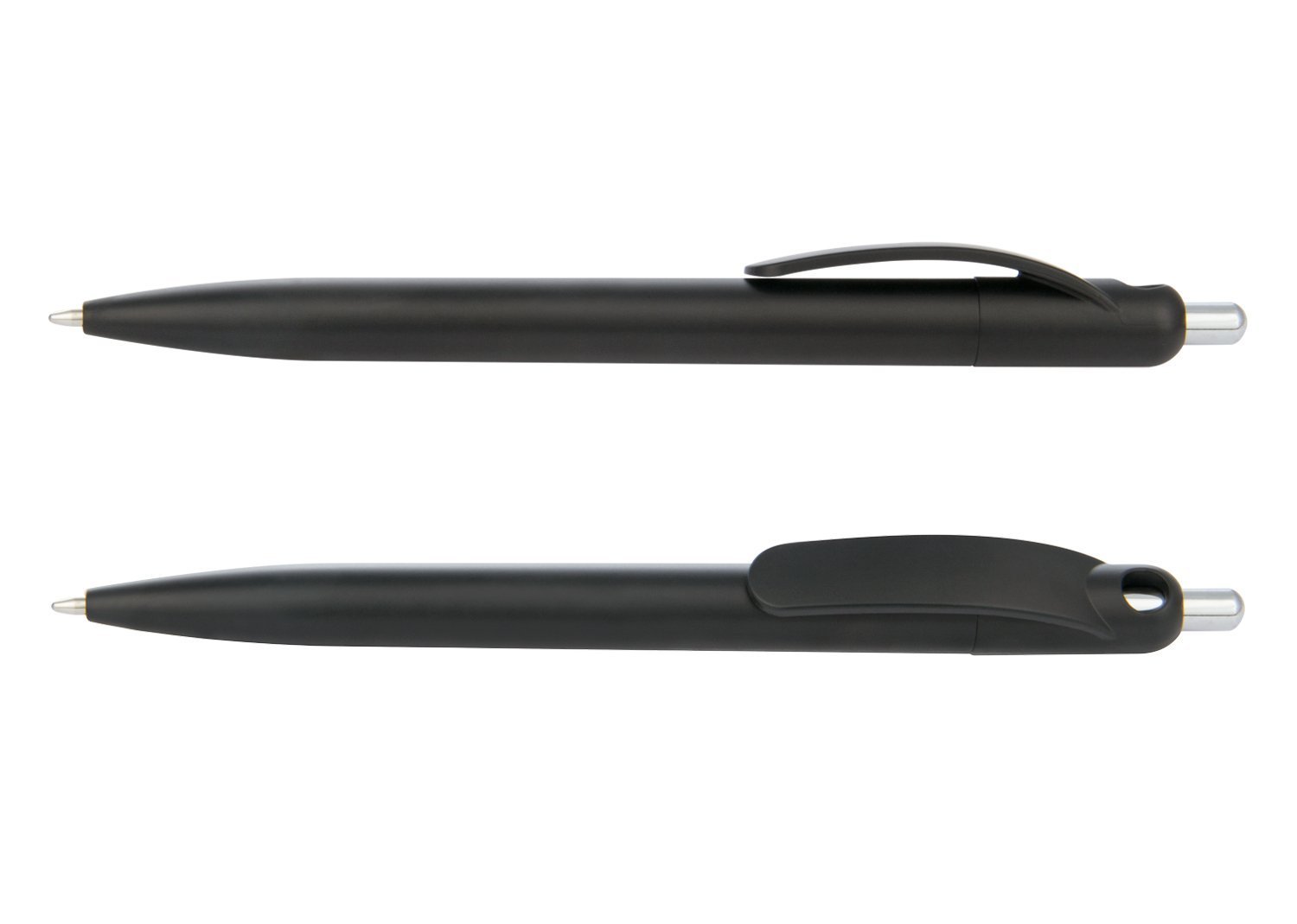 Bolígrafo plástico con acabado mate y sistema de apertura retráctil.