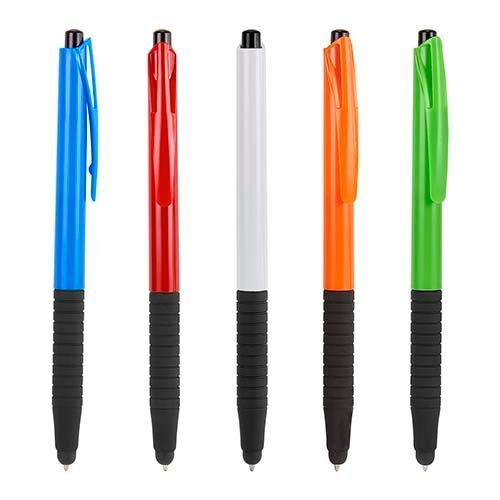 Bolígrafo con touch screen y grip antiderrapante. Mecanismo pulsador.
