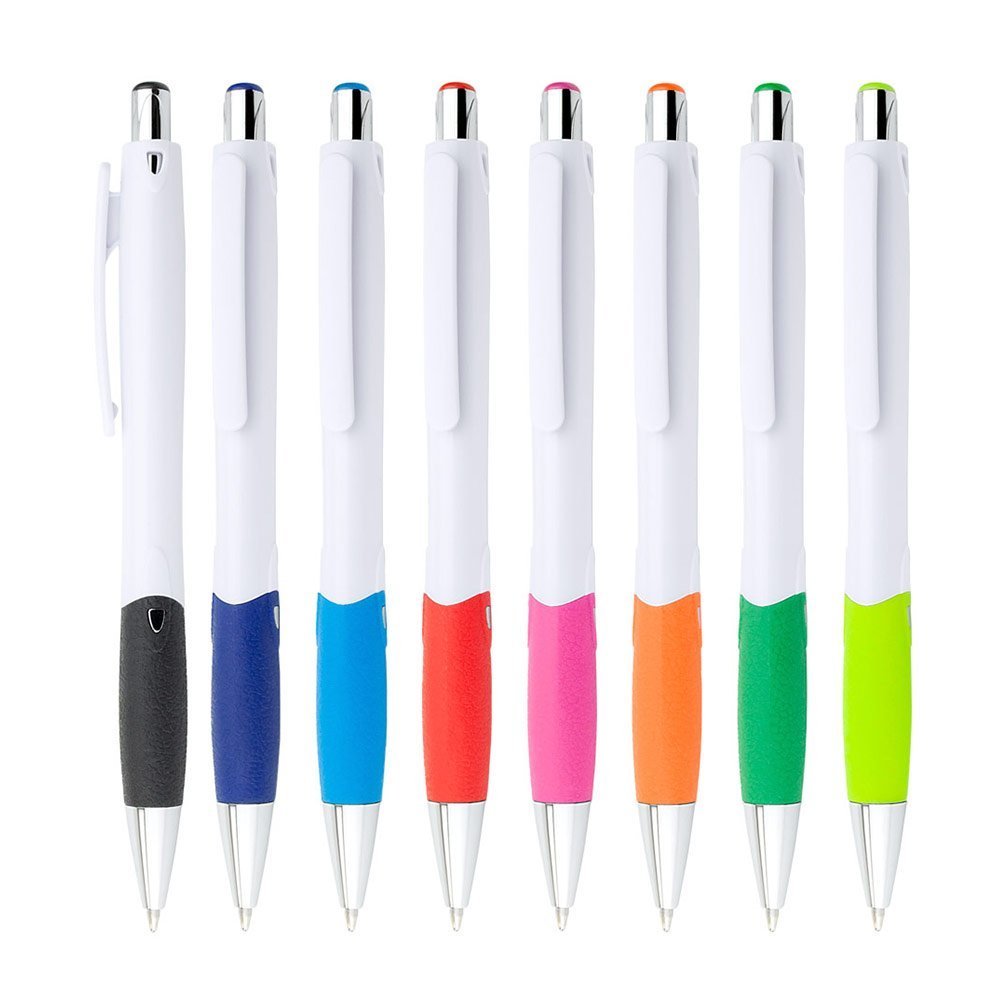 Bolígrafo plástico con sistema retráctil con grip en caucho