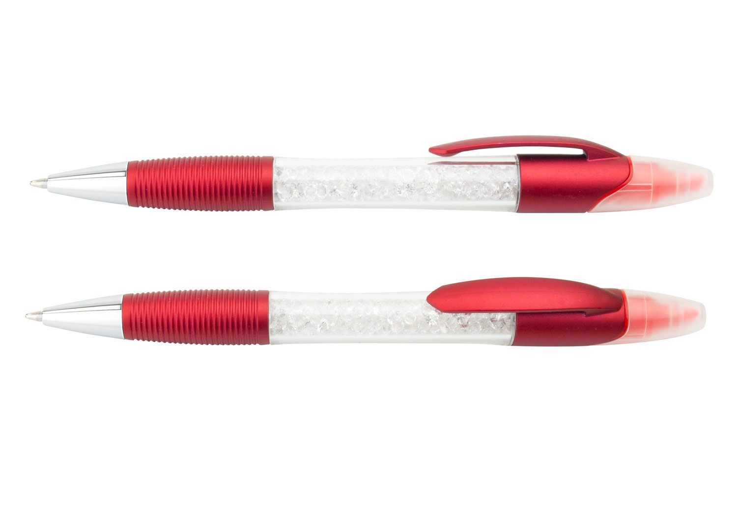 Bolígrafo plástico sistema twist y resaltador con tapa. Cristales en la parte central para dar diseño
