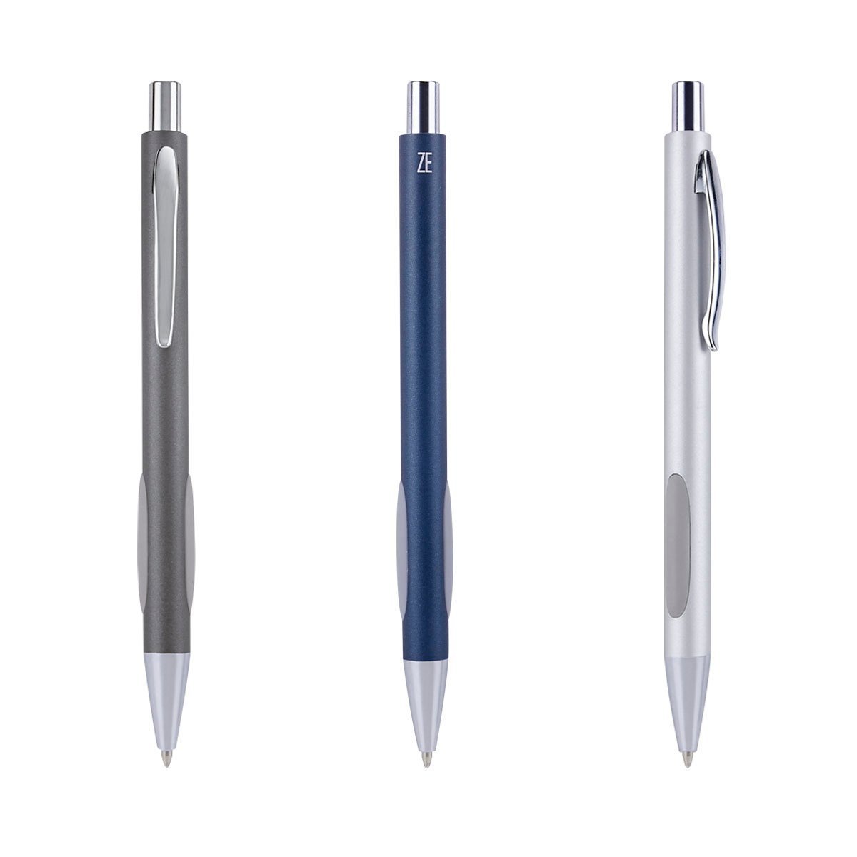 Bolígrafo con grip antiderrapante en los costados. Mecanismo pulsador.