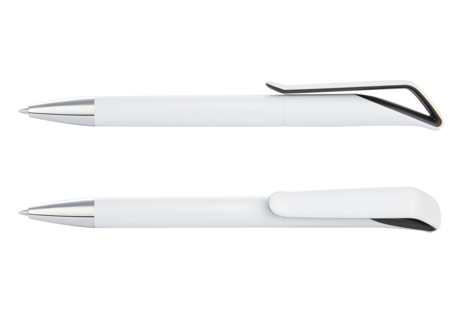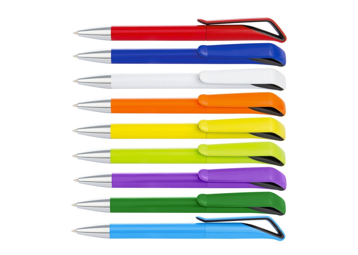 Bolígrafo plástico con sistema de apertura twist. Punta plateada.