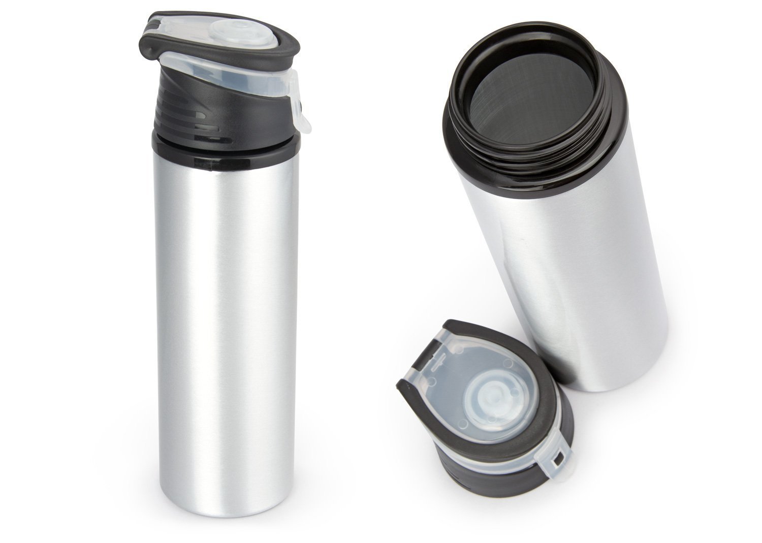 Botella de aluminio con agarradera, tapa rosca y boquilla con cubierta plástica. Libre de BPA u otras sustancias nocivas. No retiene ni transmite sabores. Pintura exterior atóxica. Capacidad 600 ml./ 20 Oz.