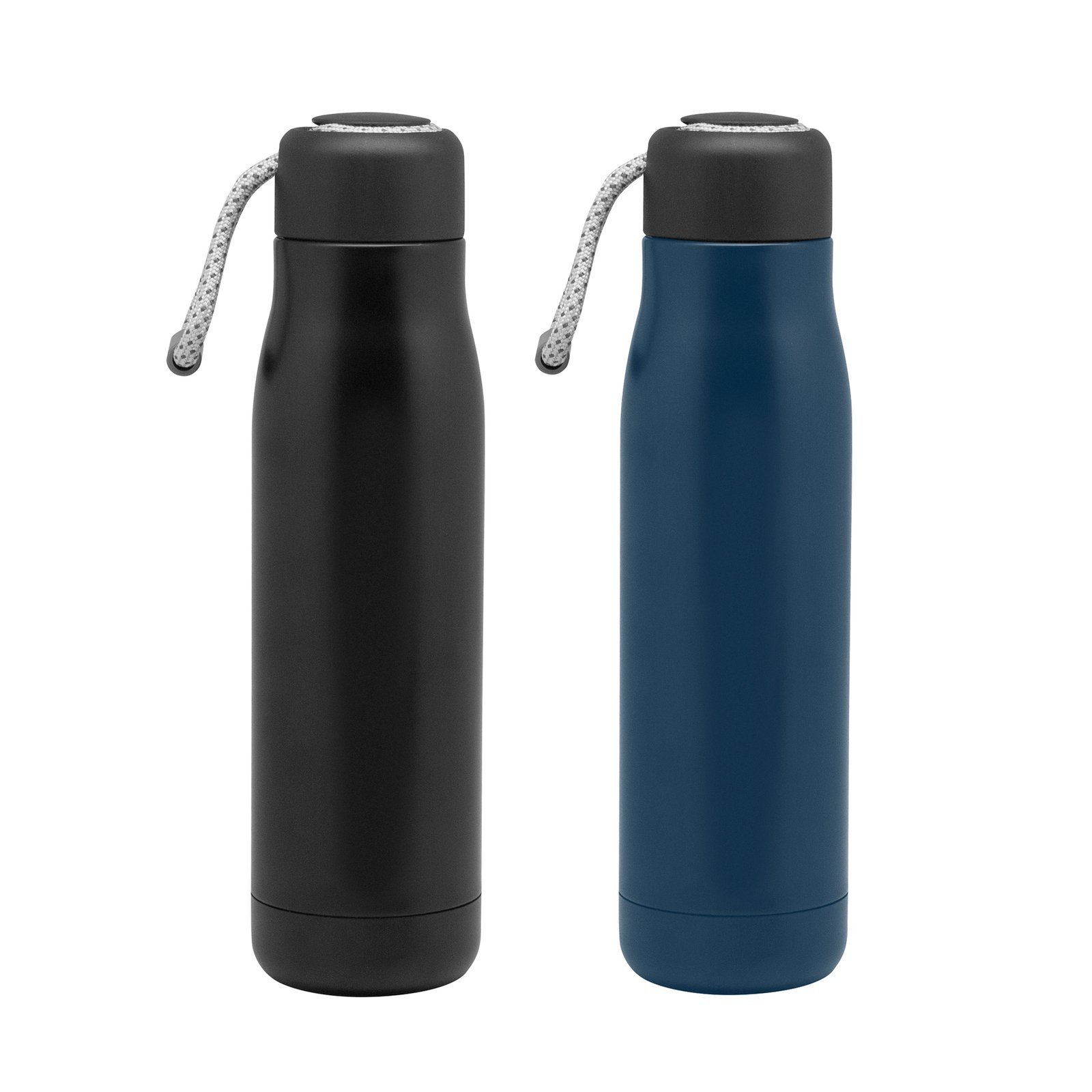 7cm x 25.5 cm. Capacidad 500 ml. Acero inoxidable. Botella con aislamiento térmico vacuum. Interior de acero 304 y exterior de acero 201. Tapa plástica PP + Anillo de silicona antiderrame. Posee además tira de color gris de 12 cm de largo. Ideal para llevarla a todos lados. Mantiene hasta 12 hs la temperatura de las bebidas calientes y 24 hs de las bebidas frías. Presentación en caja de regalo Kraft.