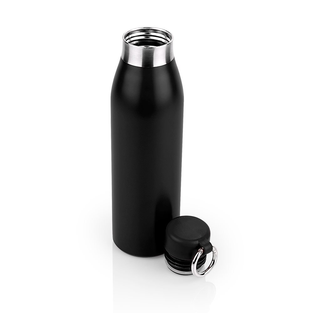 Botella en Acero inoxidable. Tapa rosca y gancho carabinero para transportar. Base antideslizante. Capacidad 500 ml / 17 Oz