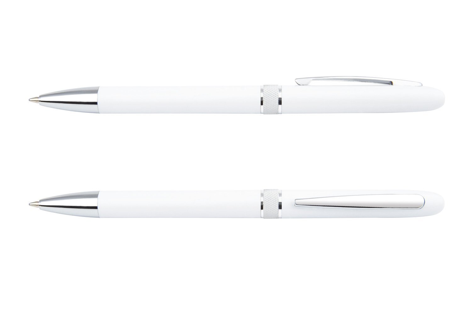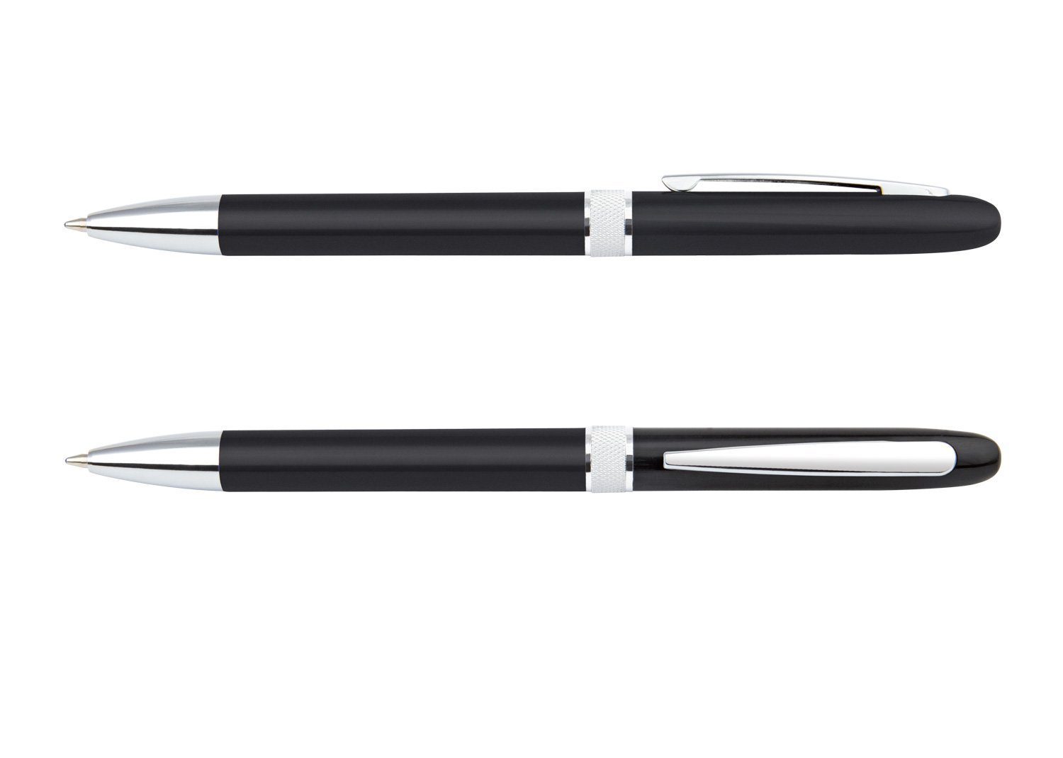 Bolígrafo con sistema de apertura Twist. Clip y punta plateada.