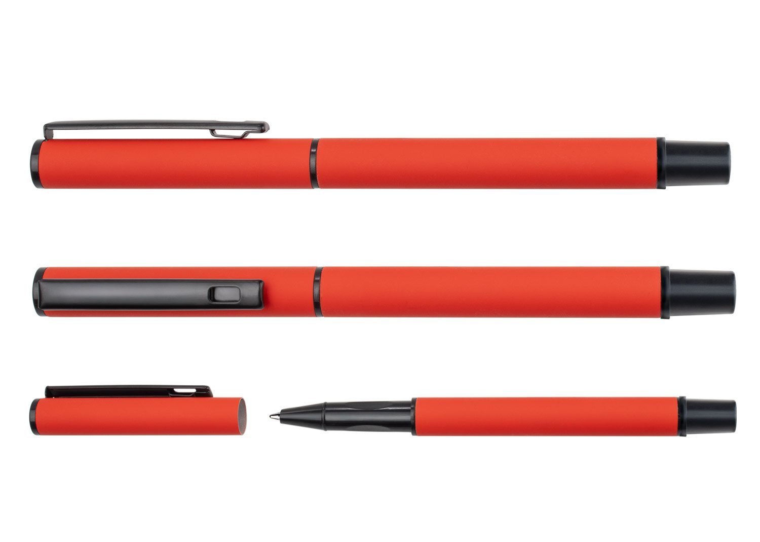 Bolígrafo con cuerpo de aluminio de color engomado con tapa, clip negro y adornos. (Bolígrafo/Esfero)