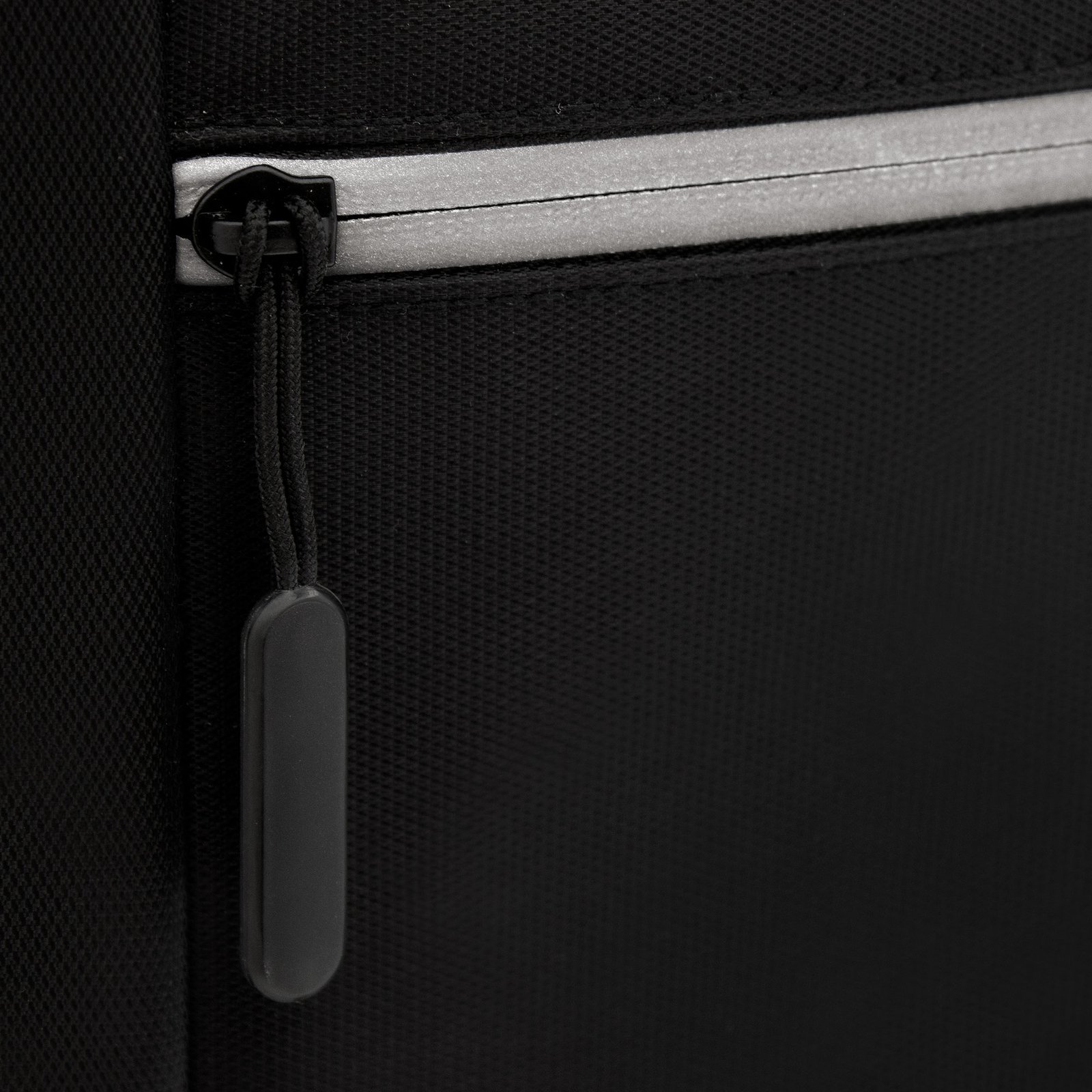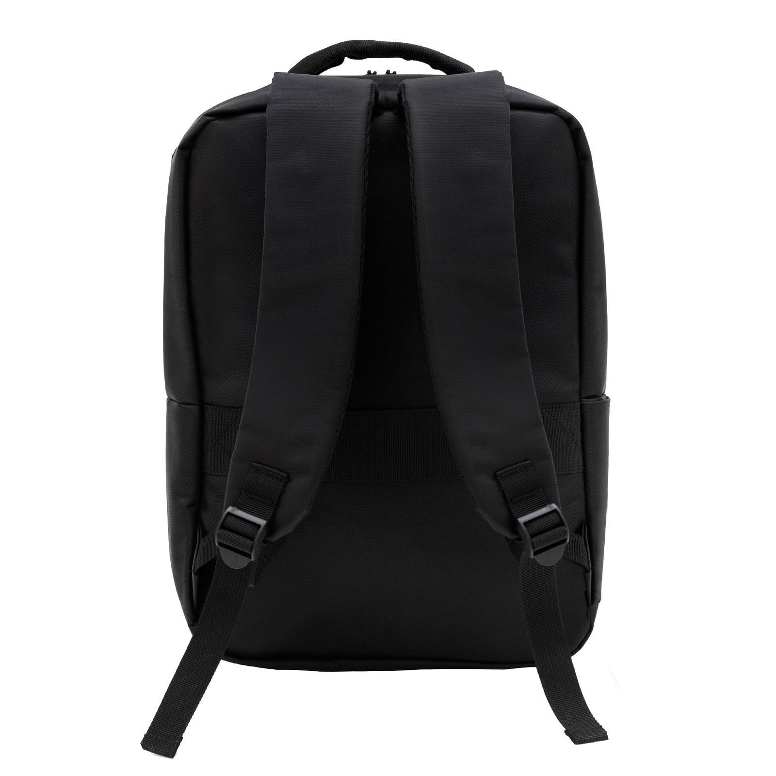 28 x 40 x 13 cm. Capacidad 14 litros. Poliéster jacquard tejido Oxford. Interior forrado 210T. Morral portanotebook de hasta 15 pulgadas. Compartimento principal con bolsillo acolchado para la notebook. Compartimento frontal con cierre, interior con bolsillos organizadores. Bolsillo en el frente con cremallera plateada reflectiva y bolsillo lateral. Asa superior reforzada, correas ajustables, ambas acolchadas. Tira para sujetar la mochila en la manija extensible de un equipaje de mano. Tiradores de cierres engomados.