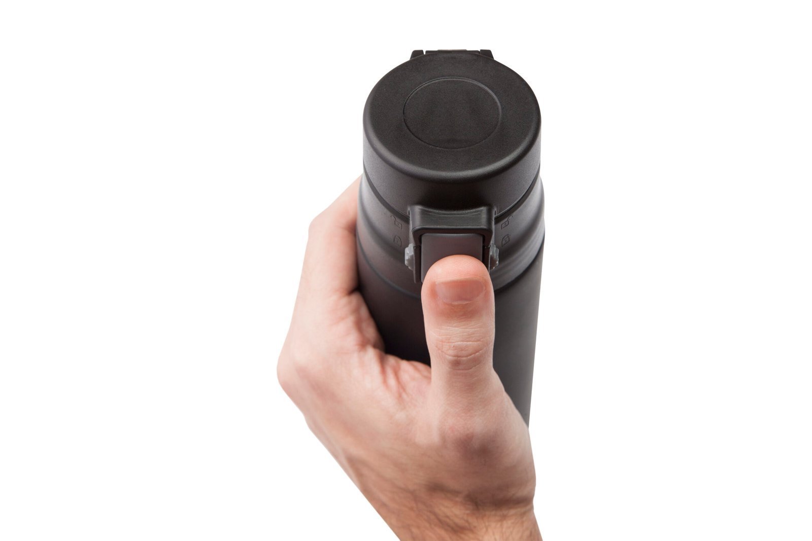 7 x 25,5 cm. Capacidad 500 ml. Acero inoxidable. Mug doble pared. Interior de acero 304 y exterior de acero 201. Tapa plástica con botón a presión de apertura. Traba de seguridad. Mantiene las bebidas frías y calientes por más tiempo. Presentación en caja de regalo.
