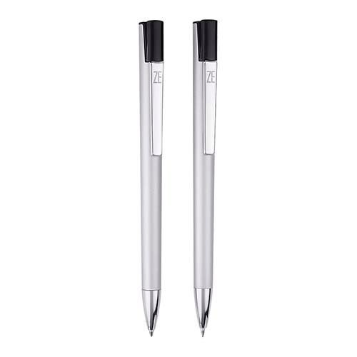 Bolígrafo y lapicera 0.5 mm. Mecanismo pulsador en clip. Incluye estuche.