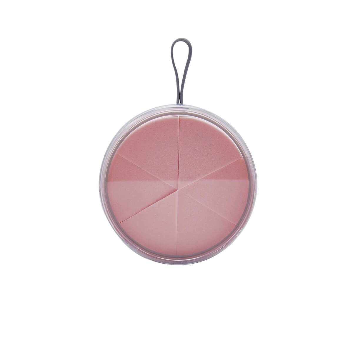 Estuche con 6 esponjas para maquillaje. Las esponjas tienen forma de cuña para una fácil aplicación de maquillaje o corrector líquido y en crema. Tienen una textura suave y absorbente al agua. Pueden utilizarse húmedas o en seco.
