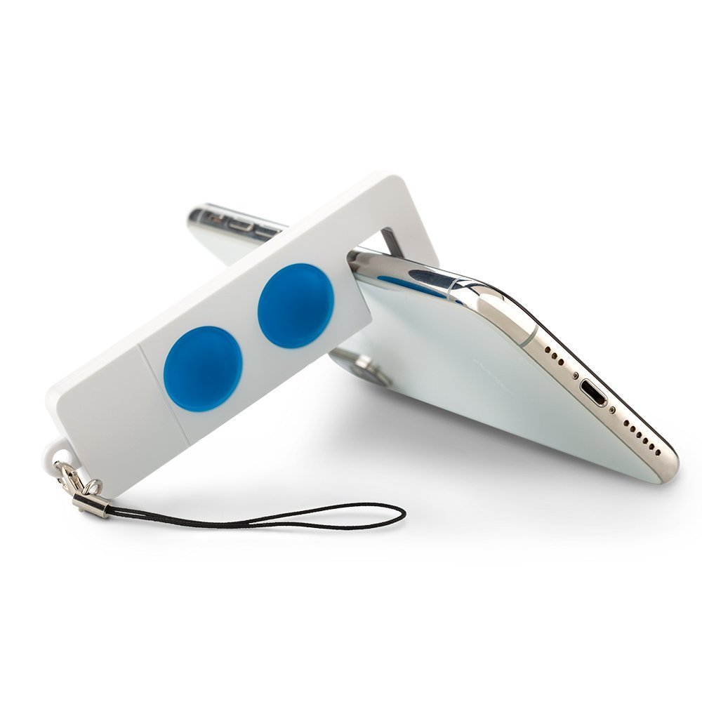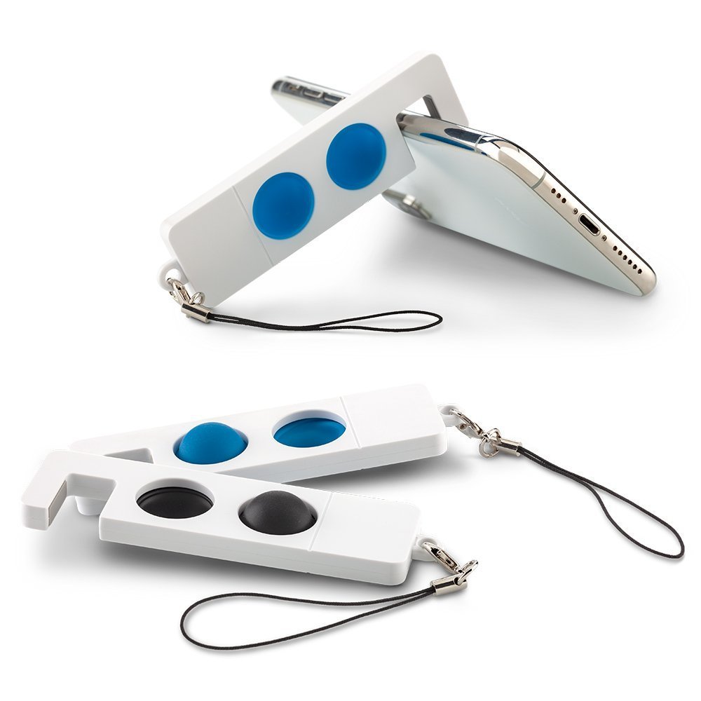 Soporte para móviles con botones ergonómicos y antiéstres para un mejor agarre. Incluye cordón para cargar, el soporte cuenta con hasta 12mm de espacio para ajustar según el grosor del dispositivo.