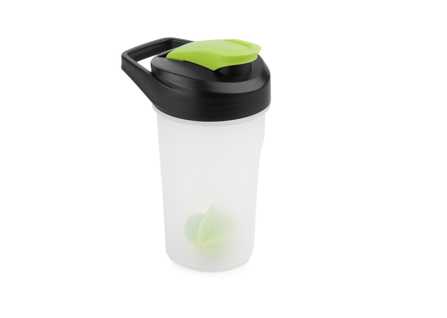 Botella deportiva con agarradera y shaker. Tapa rosca con boquilla de cierre a presión. En PP Libre de BPA, ftalatos u otras sustancias nocivas. No retiene ni transmite sabores u olores. Capacidad 400ml / 14 Oz.
